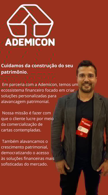 Meu nome é Guilherme Cota, consultor de investimentos autorizado Ademicon, apaixonado por ajudar pessoas a entender e aproveitar todo o potencial do consórcio como ferramenta de alavancagem financeira e investimento inteligente.